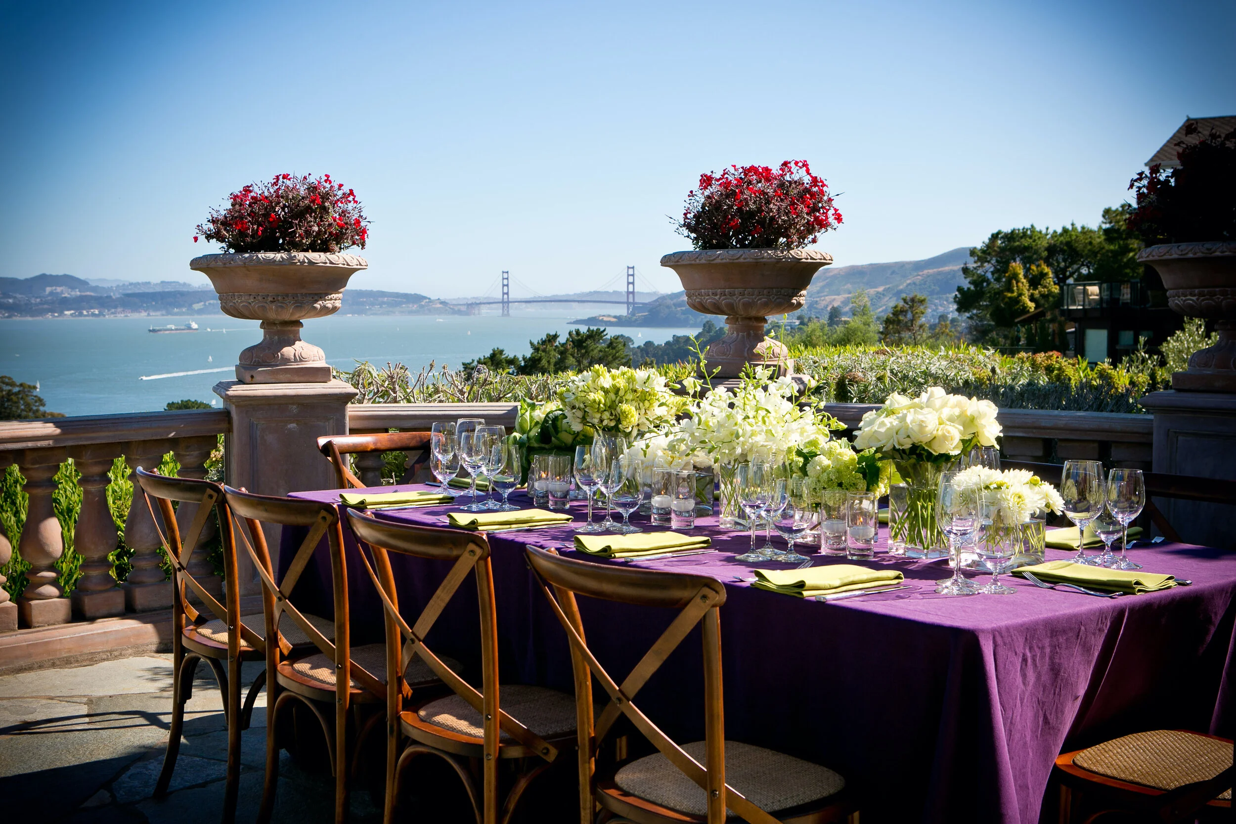 Nestled in the hills above Marin County with views of the iconic Golden Gate Bridge, our client’s garden terrace was the perfect setting for an engagement celebration. Sometimes the perfect venue really is your own backyard. Photos: Arrowood Photography.
